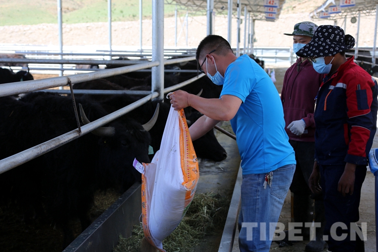 “我們的主要工作是瞄準(zhǔn)“百萬噸肉、百萬噸奶”的目標(biāo),探索出牦?!艾F(xiàn)代化”的科學(xué)養(yǎng)殖的方法,提高牦牛的群體繁殖率和縮短出欄周期。”西藏自治區(qū)農(nóng)科院掛職林周縣政府副縣長朱彥賓說:“園區(qū)牦牛會(huì)定期接種各類疫苗,避免寄生蟲感染。工作人員會(huì)根據(jù)牦牛不同階段的需求,如牛犢時(shí)期的生長需求、母牛產(chǎn)仔時(shí)期的營養(yǎng)需求等,進(jìn)行科學(xué)的飼料配比,最大程度保證牦牛各階段的生長需求。園區(qū)在冬春季節(jié)植被稀疏無法滿足牦牛需求時(shí),通過種植飼草,將牦牛進(jìn)行統(tǒng)一飼養(yǎng)、集中育肥,養(yǎng)牦牛再也不用看‘天’臉色了。”