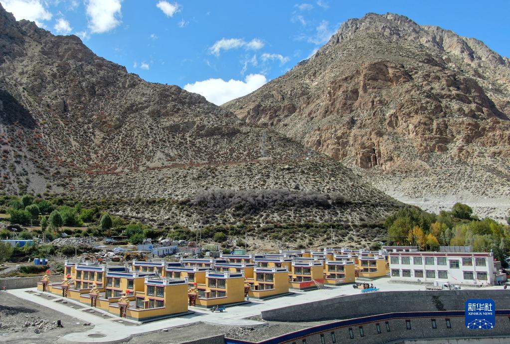 這是2019年9月21日拍攝的西藏山南市洛扎縣洛扎鎮(zhèn)新建成的次麥社區(qū)邊境小康村(無人機照片)。新華社記者 晉美多吉 攝