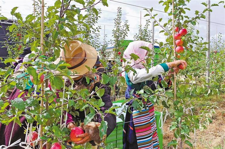 圖為貢嘎縣群眾采收矮化蘋果。記者 段敏 攝