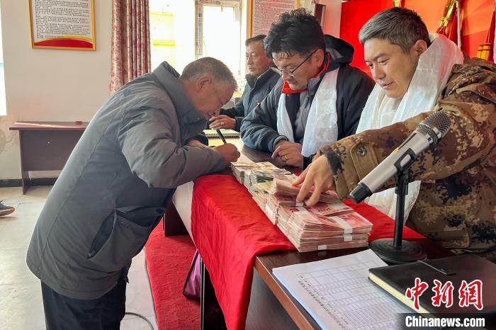 圖為2月19日,西藏那曲安多縣帕那鎮(zhèn)申格卡崗村牧民分紅。 中國鐵路青藏集團(tuán)有限公司 供圖