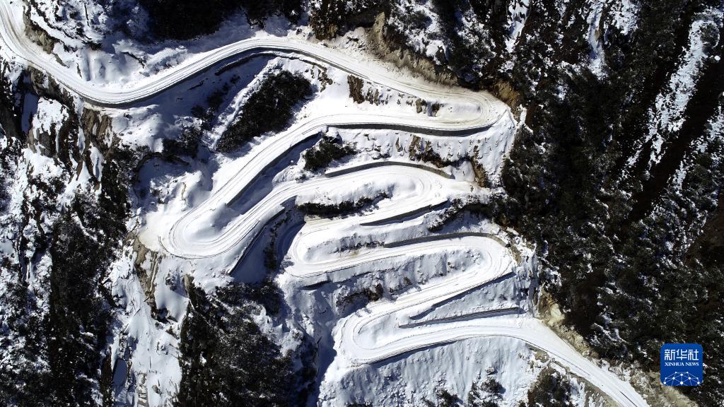 西藏洛扎縣境內(nèi)懸崖峭壁間的通村公路(2022年1月17日攝,無人機照片)。新華社記者韓曦樂 攝