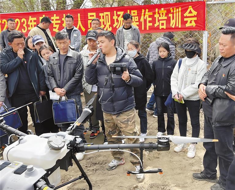 圖為授課老師在講解演示植保無(wú)人機(jī)結(jié)構(gòu)特點(diǎn)和操作要點(diǎn)。記者 扎西頓珠 汪純 攝