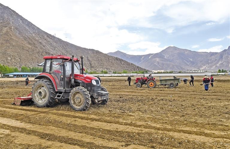 拉薩市曲水縣才納鄉(xiāng)的群眾在田里耕作。 記者 唐斌 攝