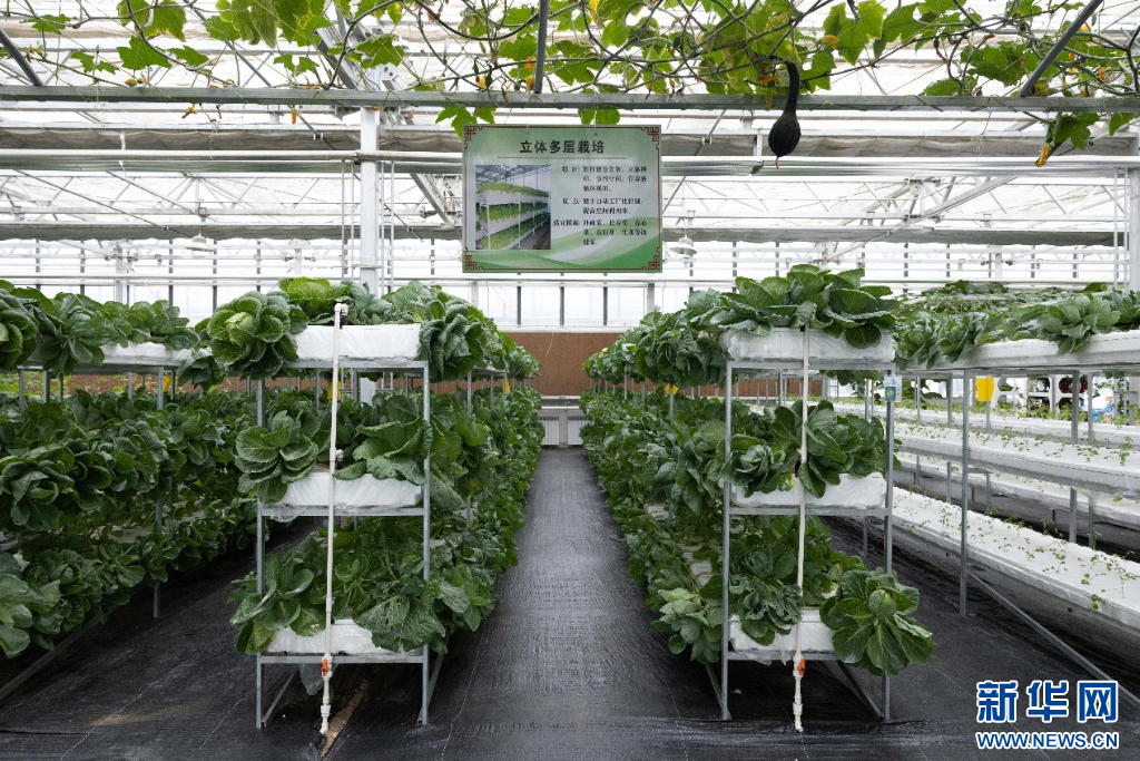 圖為曲水縣才納園區(qū)采用立體多層栽培的方式培養(yǎng)作物(8月20日攝)。 新華網發(fā) 李騰 攝