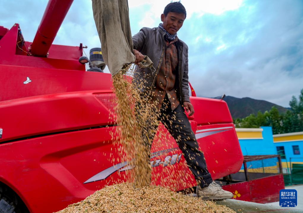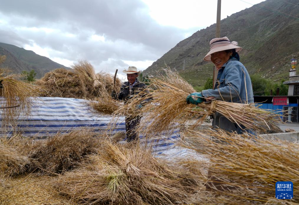 目前,西藏各地進(jìn)入秋收時(shí)節(jié)。西藏山南市乃東區(qū)的農(nóng)民在抓緊收獲作物。