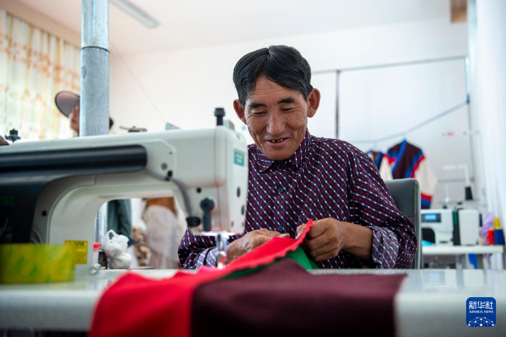 一位村民在縫制藏袍(8月24日攝)。新華社發(fā)(旦增努布 攝)