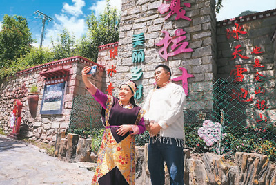 村民巴珍家的藏式小樓,院內(nèi)鮮花簇簇、室內(nèi)溫暖如春,二樓的3個(gè)房間租給旅游企業(yè)用作客房。“一年房租收入有2萬(wàn)多元,我在旅游公司打工,月工資4000多元,一年收入七八萬(wàn)元,關(guān)鍵是工作生活都在自己村里,簡(jiǎn)直是太方便了?!卑驼浜軡M意現(xiàn)在的生活。旦增達(dá)杰介紹,光房屋租金一項(xiàng),村民戶均年增收3萬(wàn)多元。