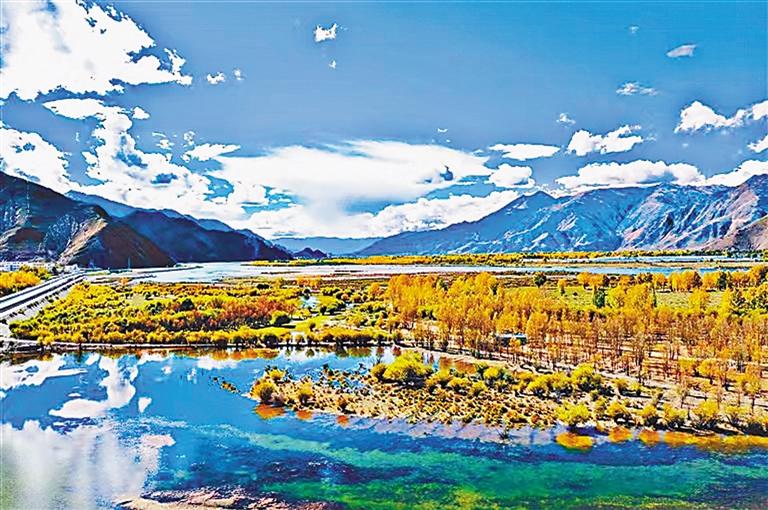達(dá)孜區(qū)深秋的金色池塘。