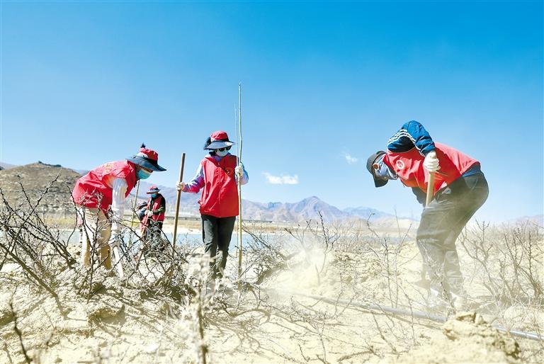 雅魯藏布江兩岸人義務(wù)植樹活動(dòng)