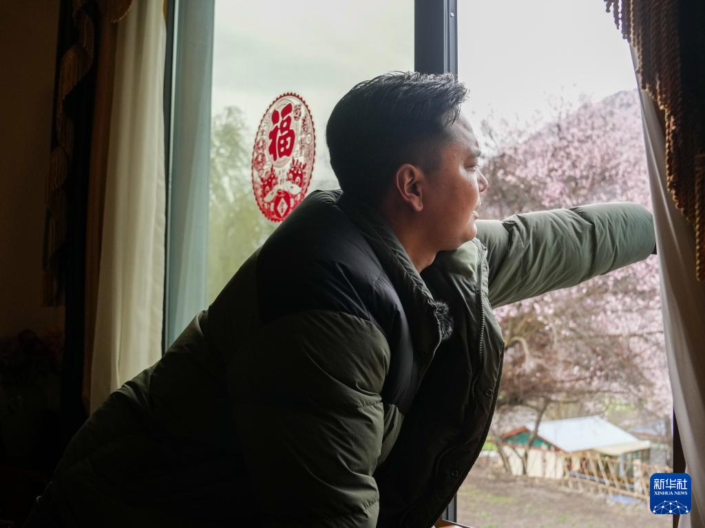 洛松頓珠打開自家民宿的窗戶(4月2日攝)。新華社記者 丁汀 攝