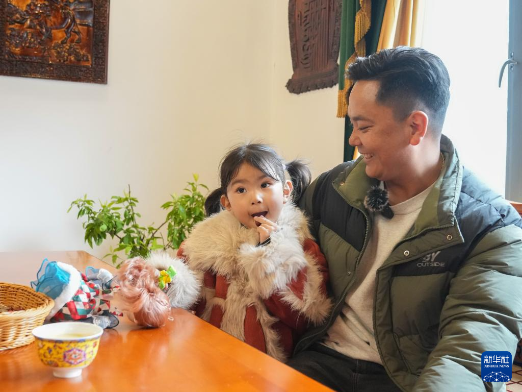 洛松頓珠在客廳與女兒聊天(4月2日攝)。新華社記者 丁汀 攝