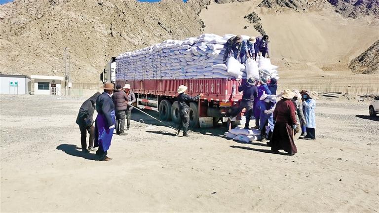 圖為曲水縣才納鄉(xiāng)發(fā)放有機(jī)肥。本報(bào)記者 格桑倫珠 攝