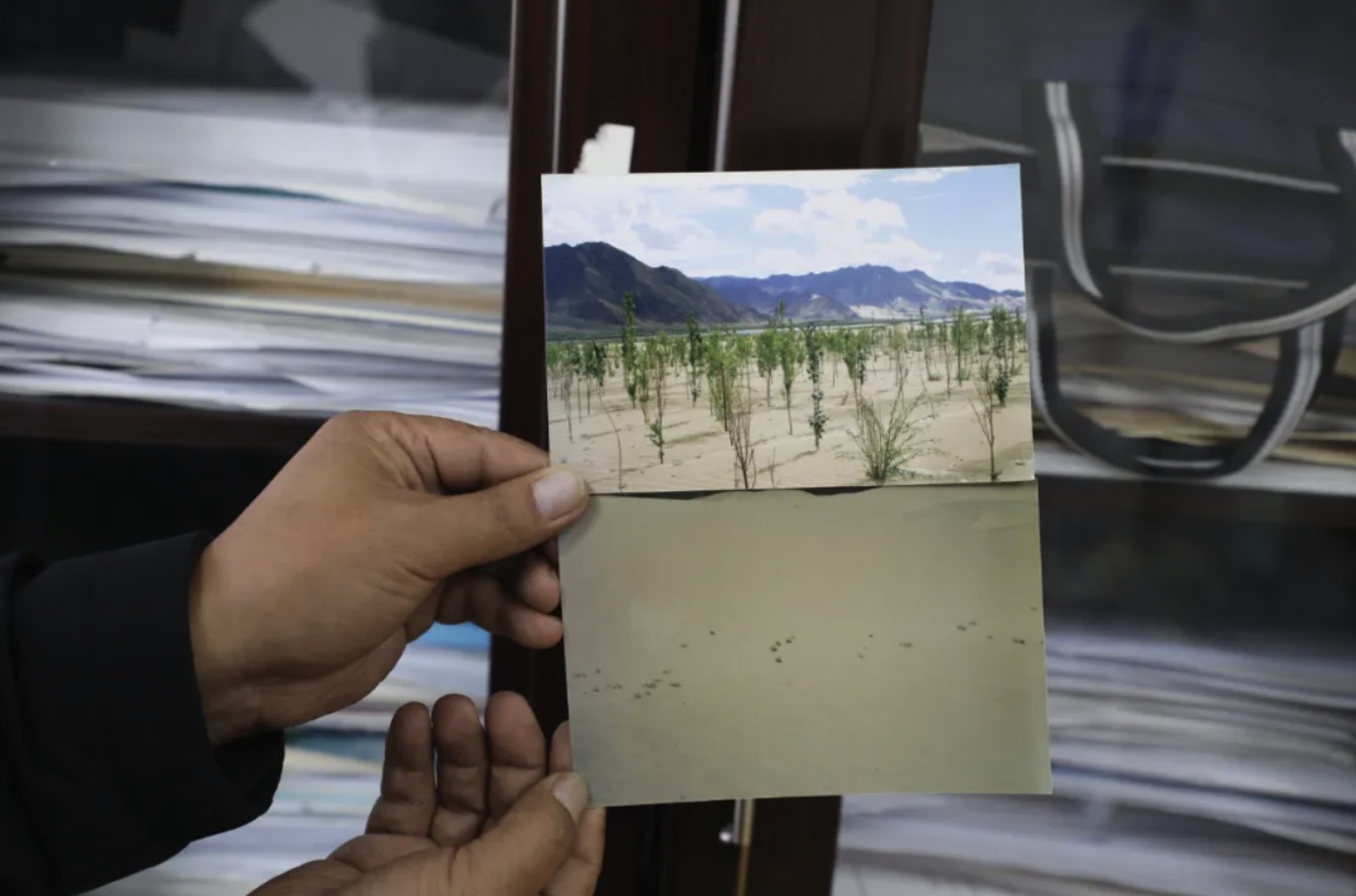 “過去,扎囊縣扎其鄉(xiāng)德吉新村一帶公路兩旁全是沙丘,風(fēng)一吹,路過的車輛經(jīng)常陷進(jìn)沙里無法行駛?!?/p>