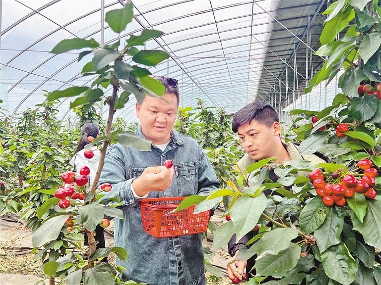 圖為群眾在基地采摘新鮮車(chē)?yán)遄?。記?胡文 攝