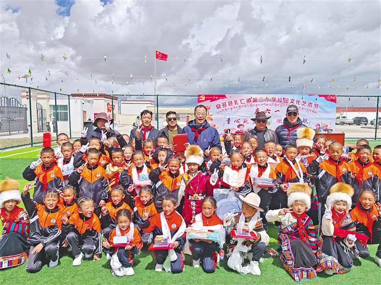 沈陽市第十批援藏工作隊員與安多縣扎仁鎮(zhèn)小學師生一起慶祝六一兒童節(jié)。