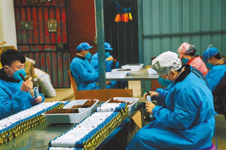 色扎鄉(xiāng)索巴村嗒哪藏香加工廠廠房內,工人在制作藏香。記者 平措郎加 攝