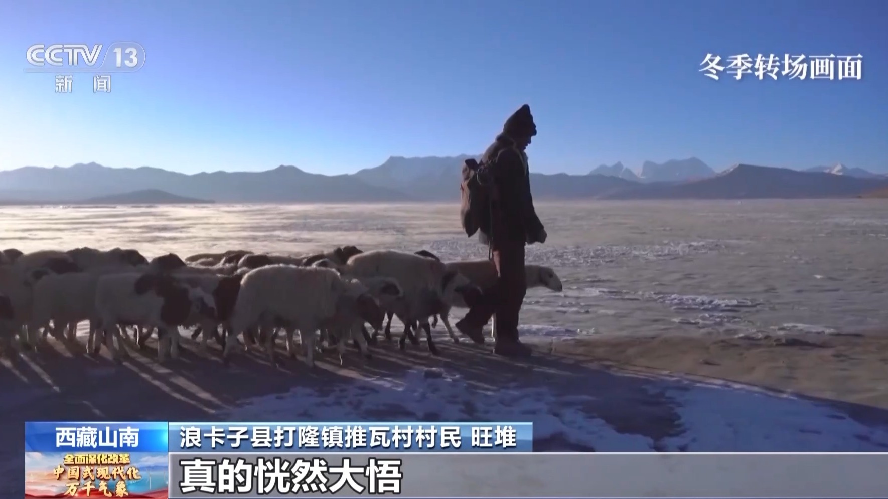 旺堆:冬季趕羊轉(zhuǎn)場(chǎng)的時(shí)候,我們?cè)谀抢锎?5天左右,晚上島上都是冰面,特別冷,將近-30℃左右,根本不想趕羊,堅(jiān)決不想干。