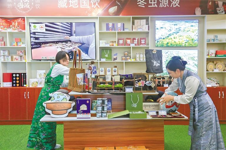 巴宜區(qū)供銷(xiāo)合作社工作人員整理文創(chuàng)產(chǎn)品。 記者 謝筱純 王珊 攝
