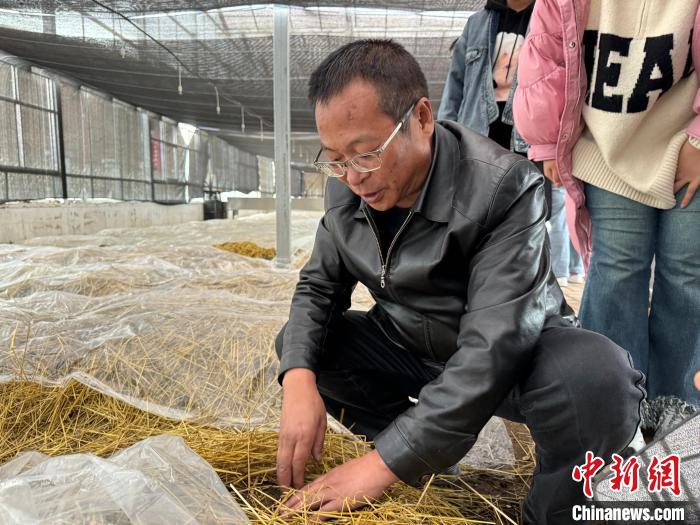 圖為王剛介紹高原有機(jī)赤松茸種植基地內(nèi)的情況。陳宗淇 攝