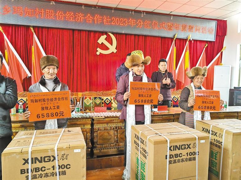 圖為瑪如村舉辦產業(yè)分紅和工資發(fā)放儀式現場。記者 丹增平措 攝