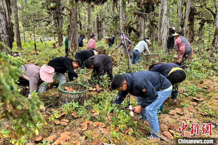資料圖為尼瑪家庭農(nóng)場帶動周邊農(nóng)牧民在林間仿野生種植的靈芝進(jìn)入采摘期。受訪者 供圖