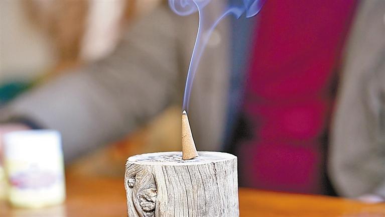 說(shuō)話間,洛桑輕輕拿起一旁擺放著的藏藥材,向記者展示:“你看,我的家鄉(xiāng)地處海拔4500米以上,大自然可真是慷慨,饋贈(zèng)了這么多好東西,像這杜鵑葉、甘松、丁香、肉豆蔻等等,都是做藏香的好原料?!彼砥鹨恍〈楦仕桑旁诒羌庑崃诵?,“這些藏藥材對(duì)人體益處可多了,也是咱藏香品質(zhì)過(guò)硬的底氣所在?!?/p>