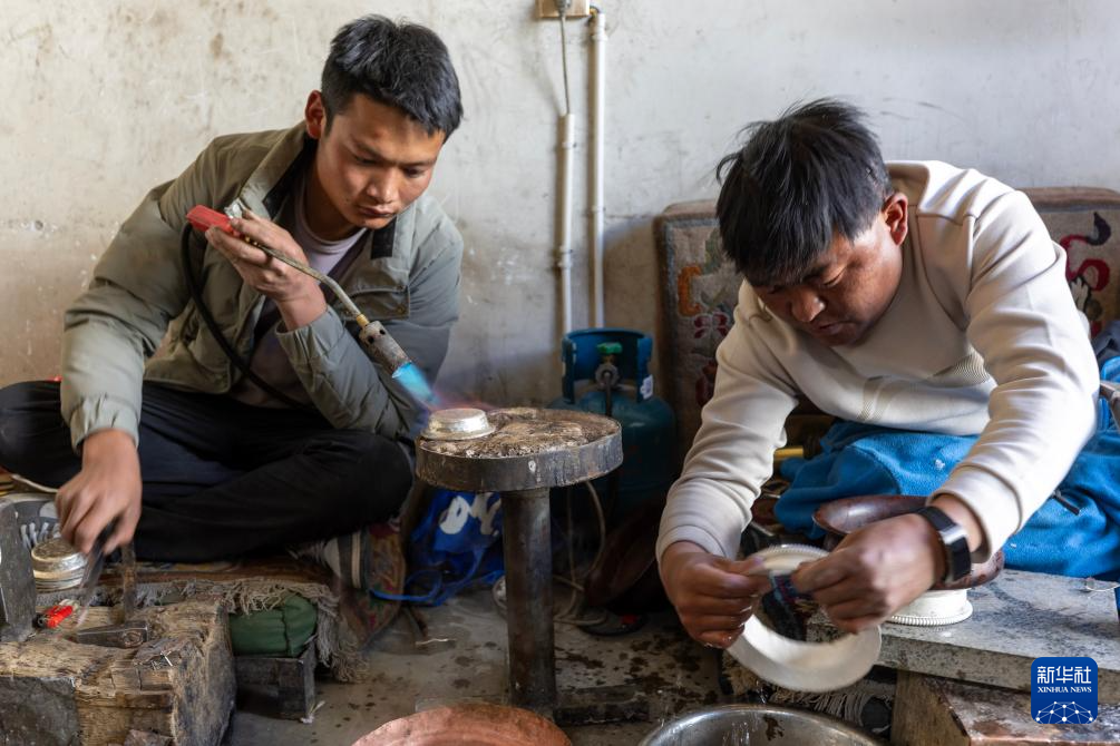 3月6日,扎西吉彩的手工匠人在給銀器塑形。新華社記者 姜帆 攝