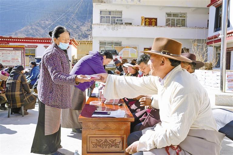 圖為分紅活動現(xiàn)場。記者 貢秋曲措 通訊員 普布朗杰 達(dá)瓦拉姆 攝
