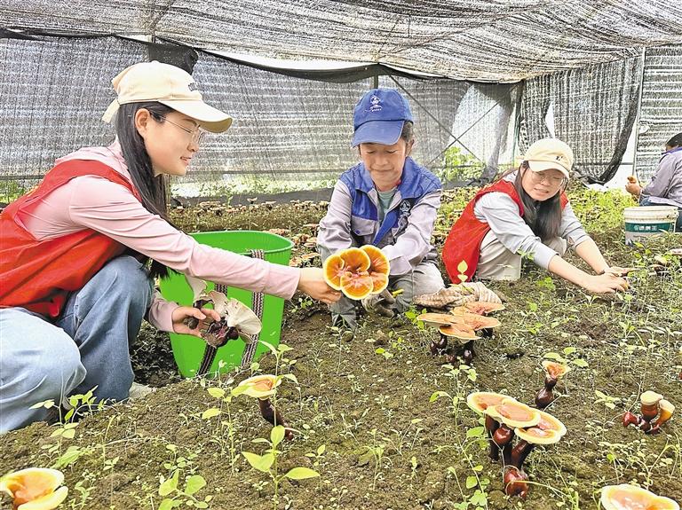 圖為林芝市墨脫縣格當(dāng)鄉(xiāng)機(jī)關(guān)黨支部的黨員正在尼日卡林下資源合作社幫群眾采收靈芝。
