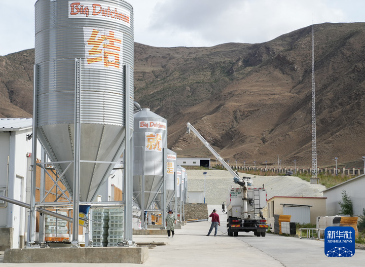 工人在西藏宏農(nóng)的現(xiàn)代化智能蛋雞養(yǎng)殖場(chǎng)內(nèi)灌裝飼料(2024年6月14日攝)。新華社記者 丁汀 攝