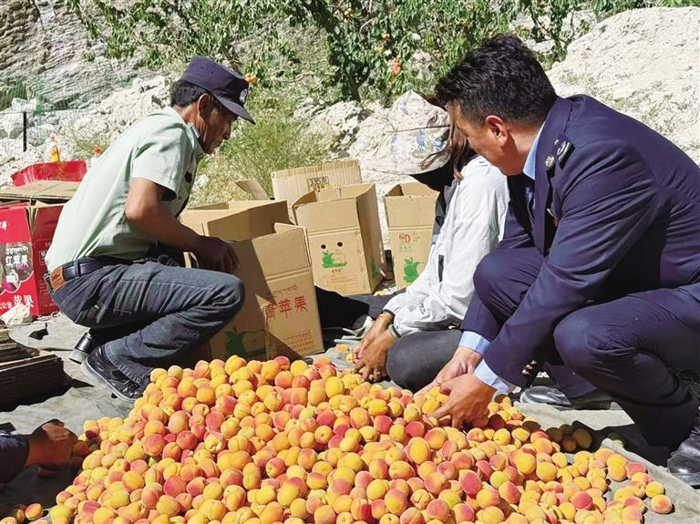 七月的底雅鄉(xiāng),昆侖山的融雪順著溝壑淌進(jìn)果園,滋潤著枝頭累累碩果。阿里地區(qū)稅務(wù)局駐丁固村工作隊將紅色宣傳旗插在鄰村什布奇村的杏林邊,與金燦燦的果實相映成趣。駐村隊員們和村民們一同蹲在田埂上,他們圍繞特色林果業(yè)發(fā)展這一主題,用通俗易懂的方式講解稅費政策,讓村民們聽得懂、記得住、用得上。