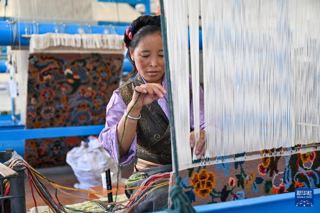 近年來,江孜藏毯不僅嚴(yán)守織造技藝中代代相傳的“魂”——穿桿式連環(huán)八字扣,又在數(shù)字制圖、生產(chǎn)工藝提升方面創(chuàng)新,使圖案產(chǎn)生光影流動的3D效果。當(dāng)?shù)氐牟靥汗就ㄟ^建立合作社、開辦技能培訓(xùn)班等方式擴大靈活就業(yè)規(guī)模,讓更多人在家門口織藏毯增收,助推鄉(xiāng)村振興。