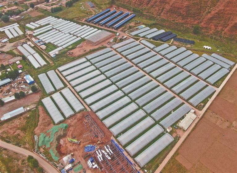 圖為貢覺縣現(xiàn)代農(nóng)業(yè)產(chǎn)業(yè)園(航拍圖)。記者 白瑪澤旺 次仁平措 攝影報(bào)道