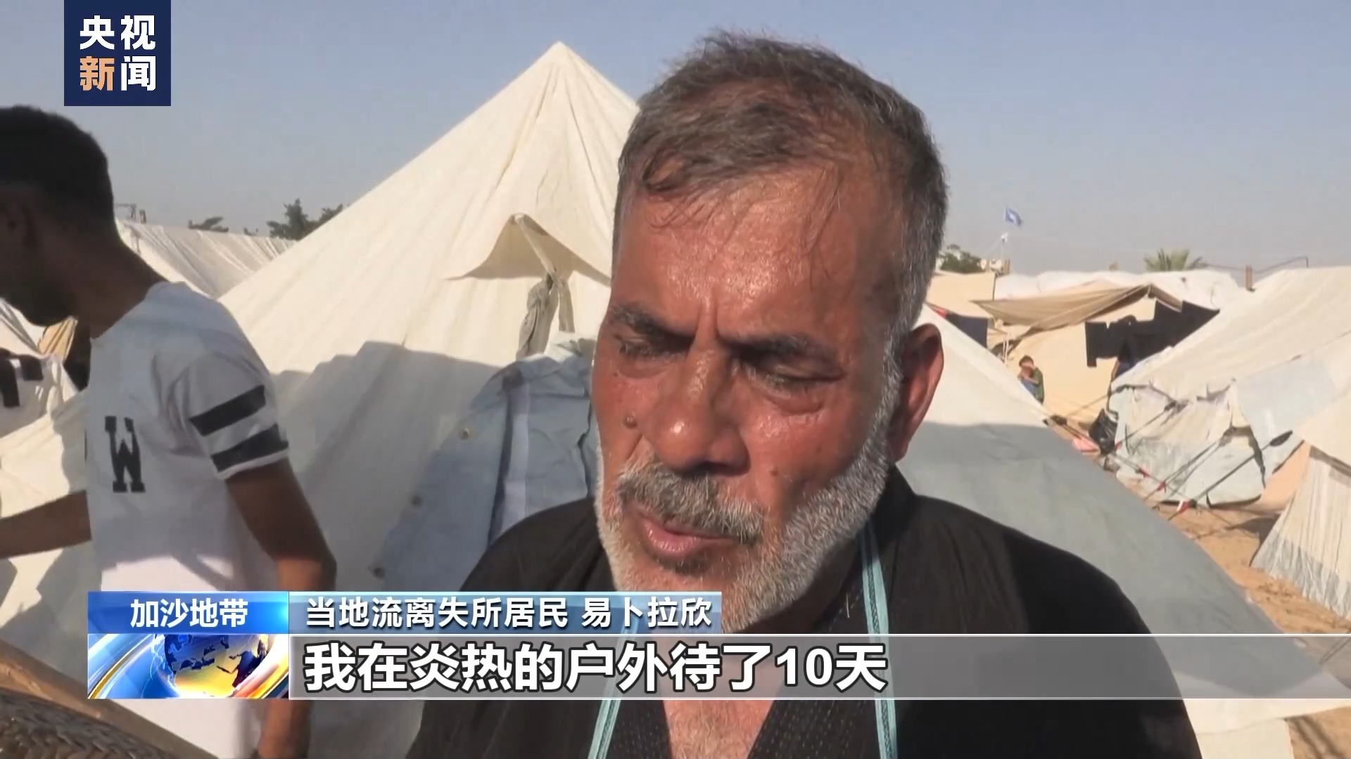 加沙地帶流離失所居民 易卜拉欣:為了躲避轟炸、毀滅和殺戮,我和九名家人搭乘兩輛車(chē)來(lái)到這里避難。為得到一個(gè)帳篷,我在炎熱的戶外待了10天。