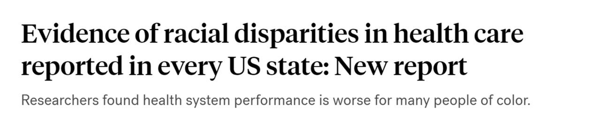 研究人員發(fā)現(xiàn),與美國(guó)白人相比,醫(yī)療系統(tǒng)對(duì)于許多有色人種來(lái)說(shuō)要糟糕許多。并且,只有6個(gè)州的醫(yī)療系統(tǒng)在所有種族或族裔中的表現(xiàn)優(yōu)于平均水平。