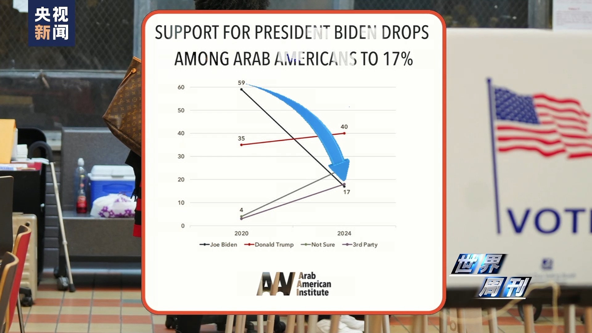 “阿拉伯裔美國(guó)人研究所”的數(shù)據(jù)也顯示,新一輪巴以沖突爆發(fā)后,拜登在阿拉伯裔選民中的支持率已由2020年的59%暴跌至17%。