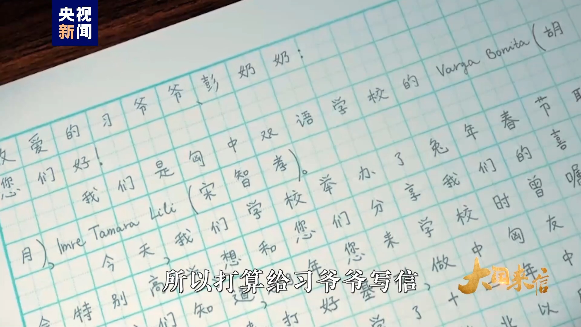 首都師范大學(xué)匈牙利留學(xué)生 胡靈月:2023年1月18日,我和宋智孝一起第二次獲得了中國大使獎學(xué)金,非常高興和激動,特別想分享我們的喜悅。另外我們也想送上新春祝福,所以打算給習(xí)爺爺寫信。