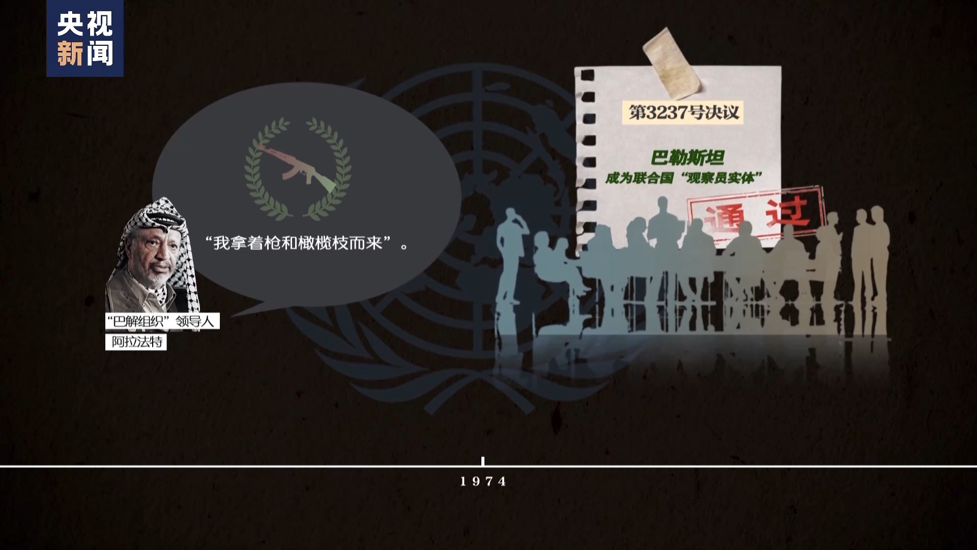1974年,聯(lián)大通過(guò)第3237號(hào)決議,巴勒斯坦成為聯(lián)合國(guó)“觀察員實(shí)體”。