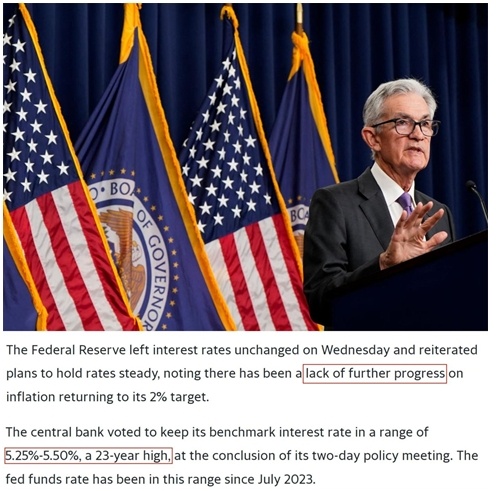 在本月初結(jié)束最新一次議息會議后,美聯(lián)儲決定繼續(xù)將聯(lián)邦基金利率維持在5.25%-5.0%的目標(biāo)區(qū)間,理由是在實現(xiàn)通脹目標(biāo)方面“缺乏進(jìn)一步進(jìn)展”。