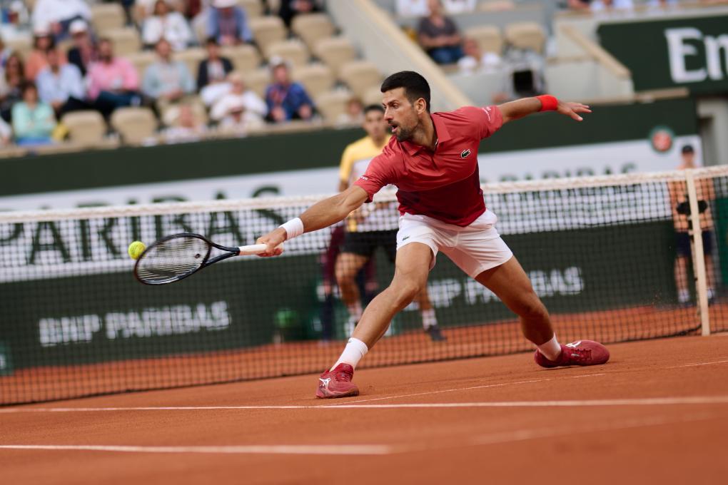 6月3日,焦科維奇在比賽中回球。新華社記者 孟鼎博 攝