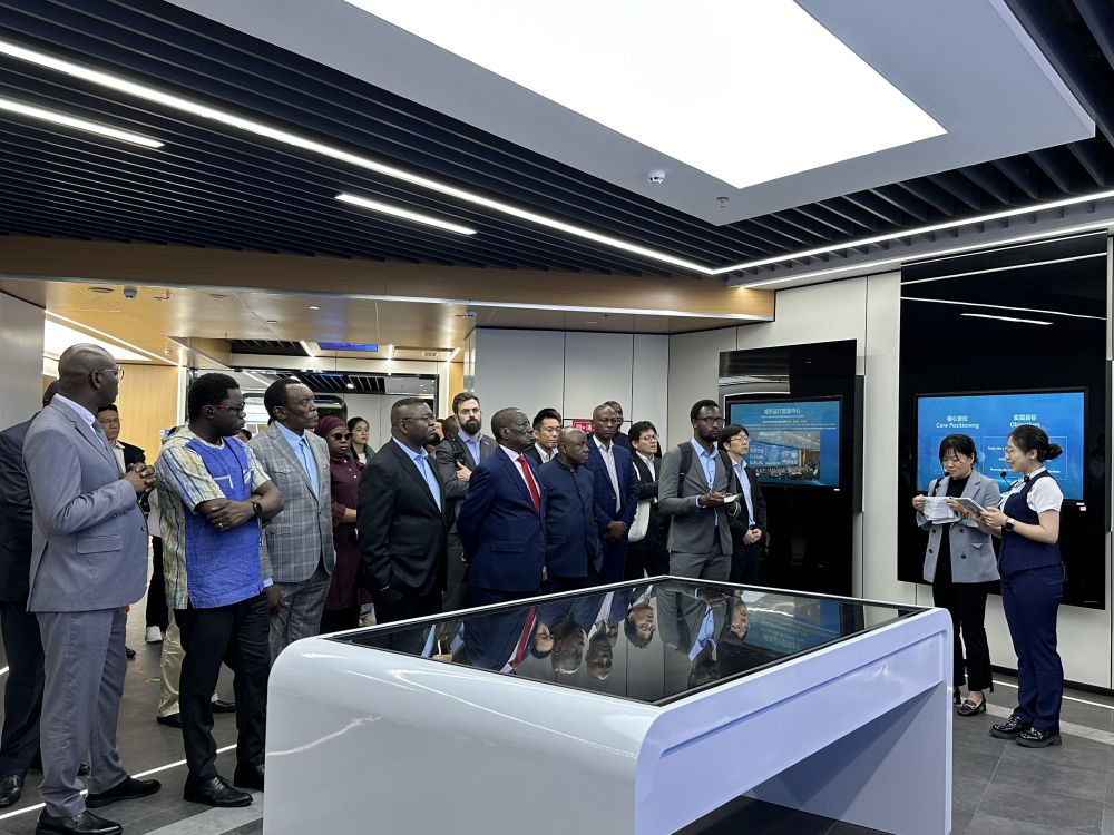 尼日利亞駐上海總領(lǐng)館商務(wù)專員穆哈穆德·哈桑一邊聽(tīng)著介紹,一邊拿出手機(jī)展示尼日利亞的一處地形,詢問(wèn)工程師對(duì)橋梁建設(shè)的建議以及橋梁養(yǎng)護(hù)經(jīng)驗(yàn)。