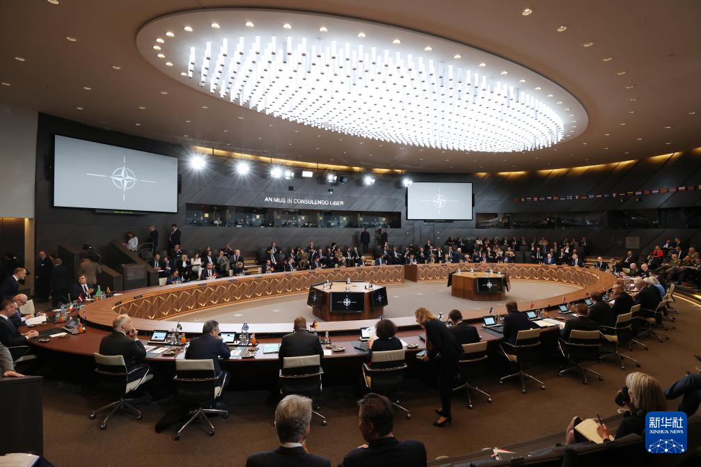 這是6月14日在比利時(shí)布魯塞爾北約總部拍攝的北約防長(zhǎng)會(huì)現(xiàn)場(chǎng)。新華社記者 趙丁喆 攝