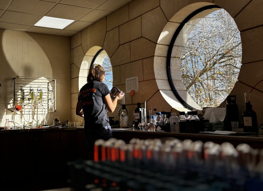 5月28日,澳大利亞庫納瓦拉瑞馬酒莊員工在實驗室檢測葡萄酒。