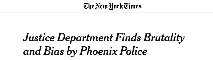 據(jù)《紐約時(shí)報(bào)》報(bào)道,美國(guó)司法部13日對(duì)亞利桑那州首府菲尼克斯市的警務(wù)工作進(jìn)行了全面審查,發(fā)現(xiàn)該市存在嚴(yán)重歧視非裔、西班牙裔和美洲原住民,經(jīng)常侵犯無(wú)家可歸者的權(quán)利以及過(guò)度使用武力等現(xiàn)象。