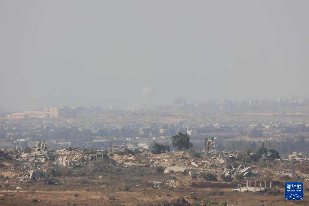 這是6月23日在以色列與加沙邊境以方一側(cè)拍攝的加沙地帶遭破壞的景象。新華社發(fā)(吉爾·科恩·馬根 攝)
