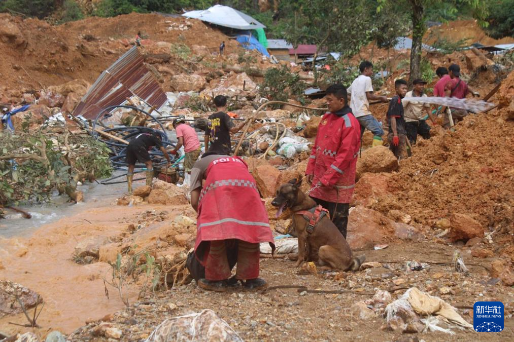 7月10日,救援人員在印度尼西亞哥倫打洛省波尼波朗戈縣遭遇山洪和山體滑坡的金礦附近開(kāi)展搜尋工作。新華社發(fā)(印尼哥倫打洛地區(qū)警察機(jī)構(gòu)供圖)
