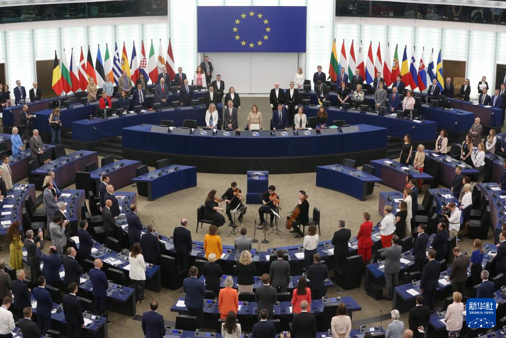 這是7月16日在法國斯特拉斯堡拍攝的新一屆歐洲議會第一次全體會議現(xiàn)場。歐洲議會16日在法國斯特拉斯堡召開全會,馬耳他籍的蘿伯塔·梅措拉經(jīng)投票再次當(dāng)選歐洲議會議長。新華社記者 趙丁喆 攝
