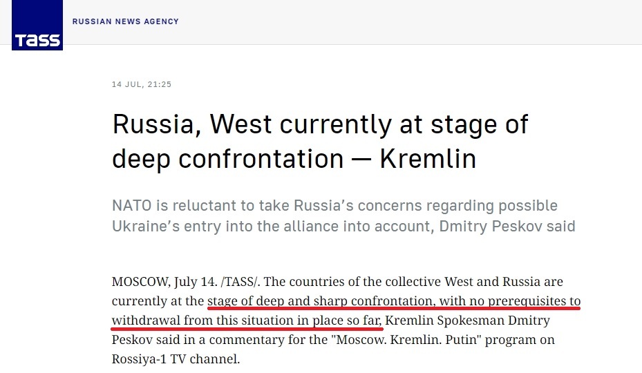 這是當(dāng)?shù)貢r間 14日,俄羅斯總統(tǒng)新聞秘書佩斯科夫針對美國日前發(fā)出的“導(dǎo)彈威脅”所做出的最新表態(tài)。