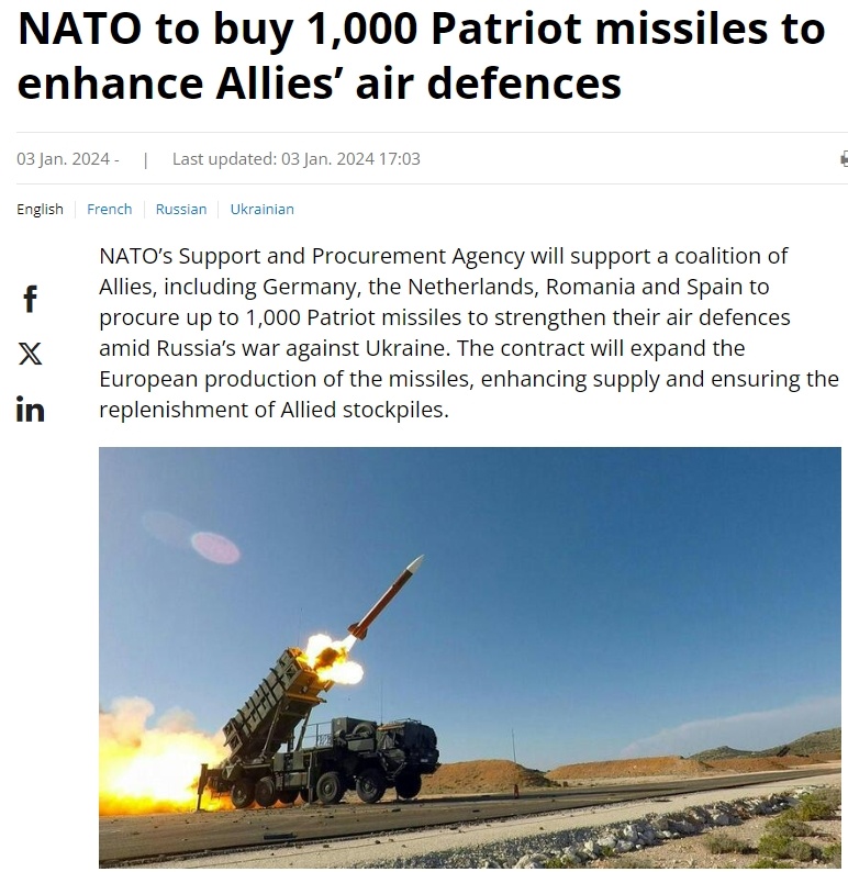 包括德國、荷蘭、羅馬尼亞和西班牙在內(nèi)的北約多個歐洲成員國今年1月決定聯(lián)合采購總價值55億美元的1000枚“愛國者”導(dǎo)彈,以幫助加強烏克蘭軍隊的防空能力,并補充北約各援烏國家的庫存。
