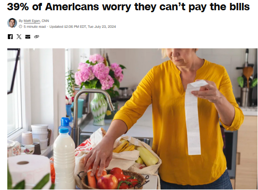 中國日?qǐng)?bào)網(wǎng)7月24日電 據(jù)美國有線電視新聞網(wǎng)(CNN)公布的一項(xiàng)最新民意調(diào)查顯示,39%的美國成年人表示,擔(dān)心家庭收入不足以支付開支。